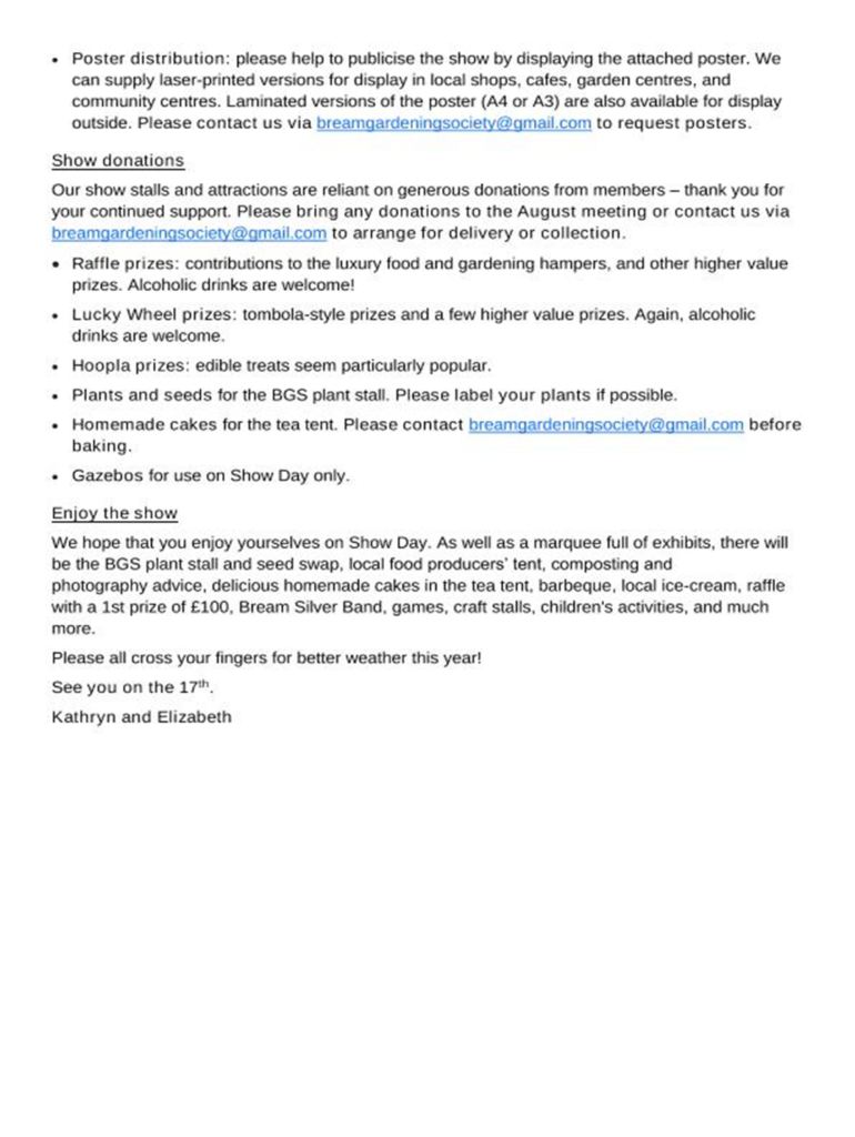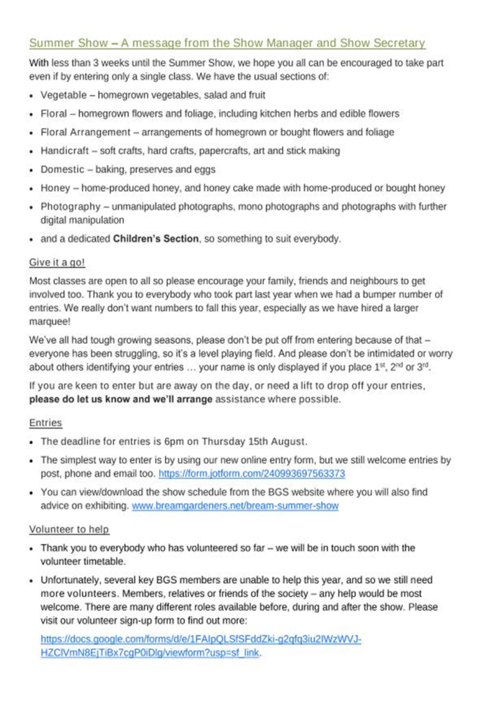 159th ANNUAL BREAM SUMMER SHOW – Details on our website and more information below.