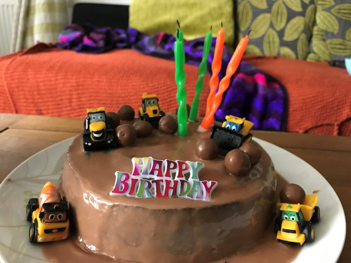 My birthday cake. Baker aged 5 made the cake and decorated it.
